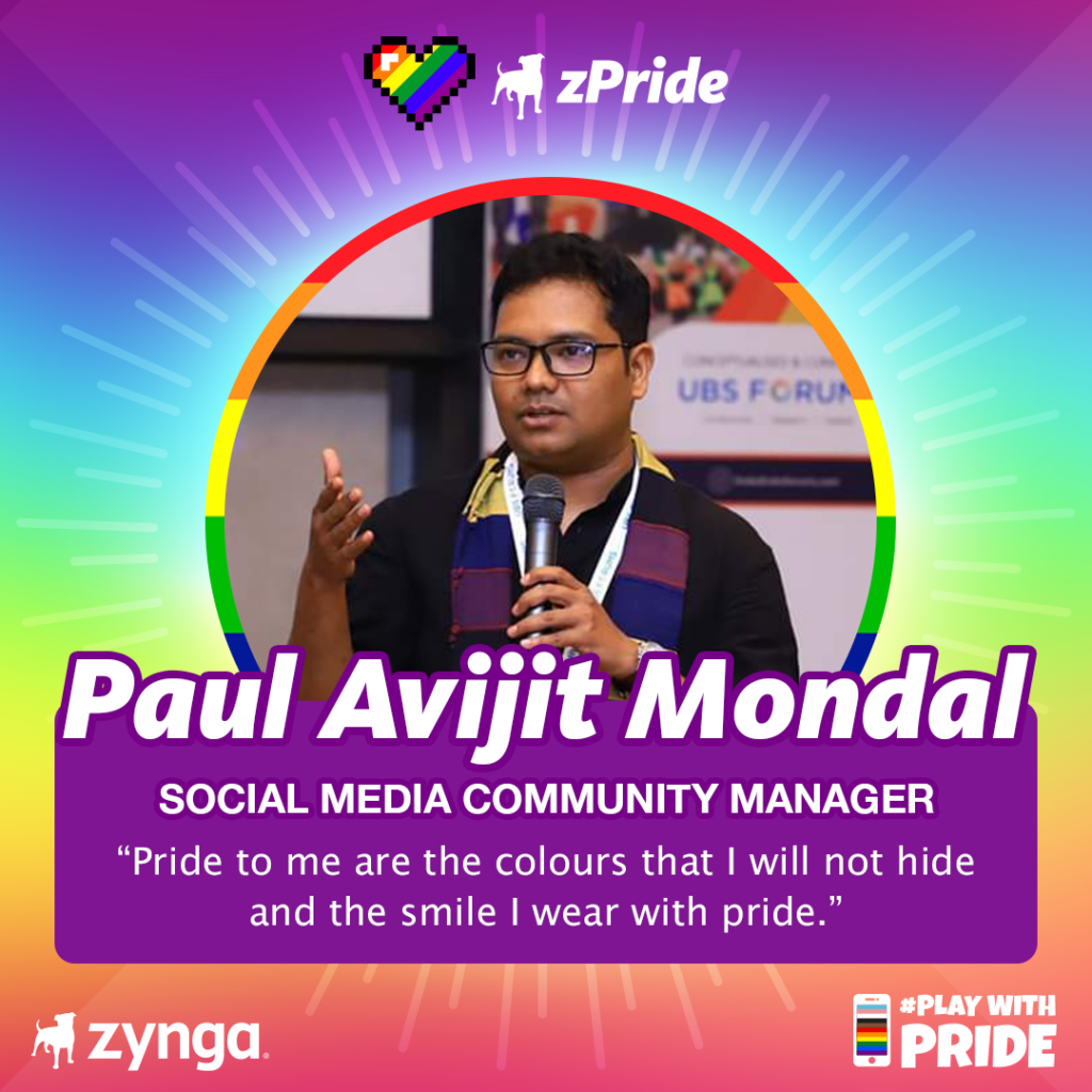Today we’re spotlighting Paul Avijit Mondal, Social Media Community Manager at Zynga. Read on to learn more about Paul, what Pride means to him and why he believes to “live and let live” can help create a world without judgment.