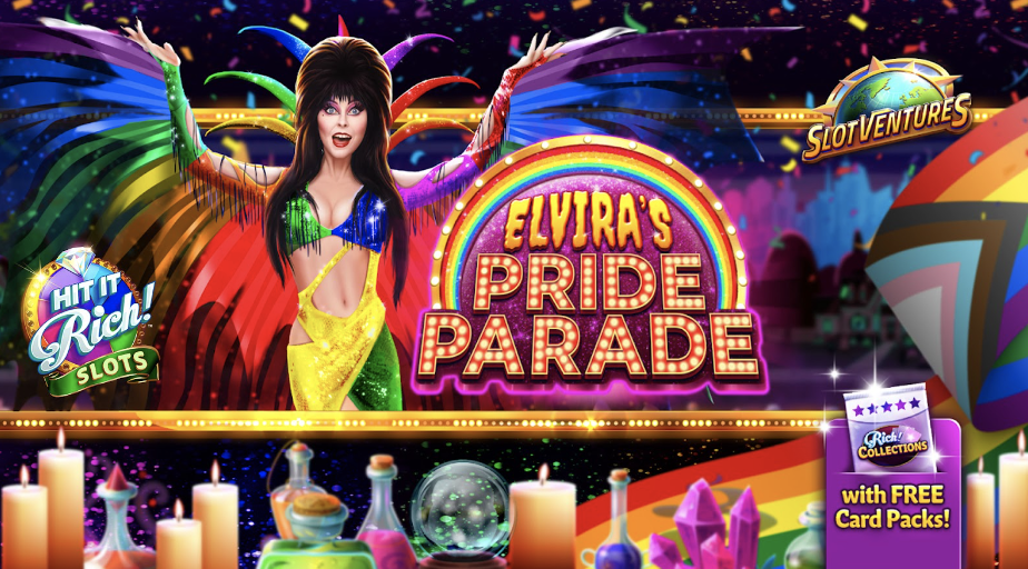 A special guest is coming to Hit It Rich! Casino Slots – Elvira! For a limited time in honor of Pride Month, players can join Elvira’s Pride Parade in-game, spinning their way through different challenges and earning rewards along the way. Those players who complete the SlotVenture challenge will earn a huge jackpot at the end!